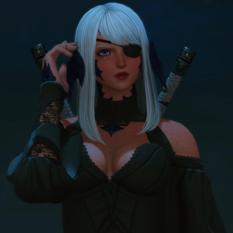 Orphaned from a young age by the Garlean Occupation, Persephone grew up in the Kugane Orphanage until she was 16. She made Gil through odd jobs and serving at the Holstery. When she was 18, a Yakuza boss took her under his wing, making her his protégée. When he died, his empire was left to her. At the mere age of 25, she was the youngest boss in the history of the Kugane Yakuza...and a woman to boot. These days, she runs such a tight ship that she lets her crew operate on their own, giving her time to enjoy the things she never got to when she was younger. You won't see her around The Spire often, but when you do, and if she doesn't have her eyepatch on...please don't stare at her eye.